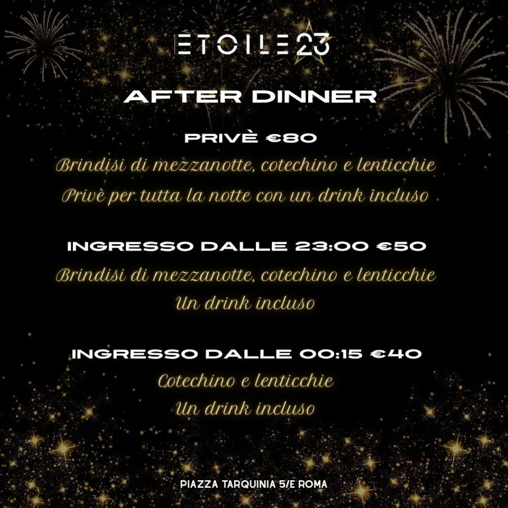 Prezzi e Formule Capodanno Etoile 23 Roma 2026