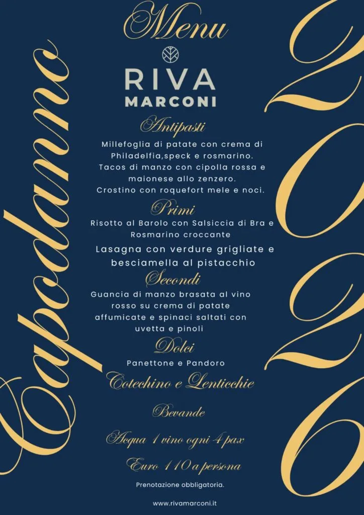 Descrizione: Nella suggestiva cornice dei Cantieri Marconi, il Riva propone un Capodanno con diverse formule, dal buffet servito alla discoteca pura.