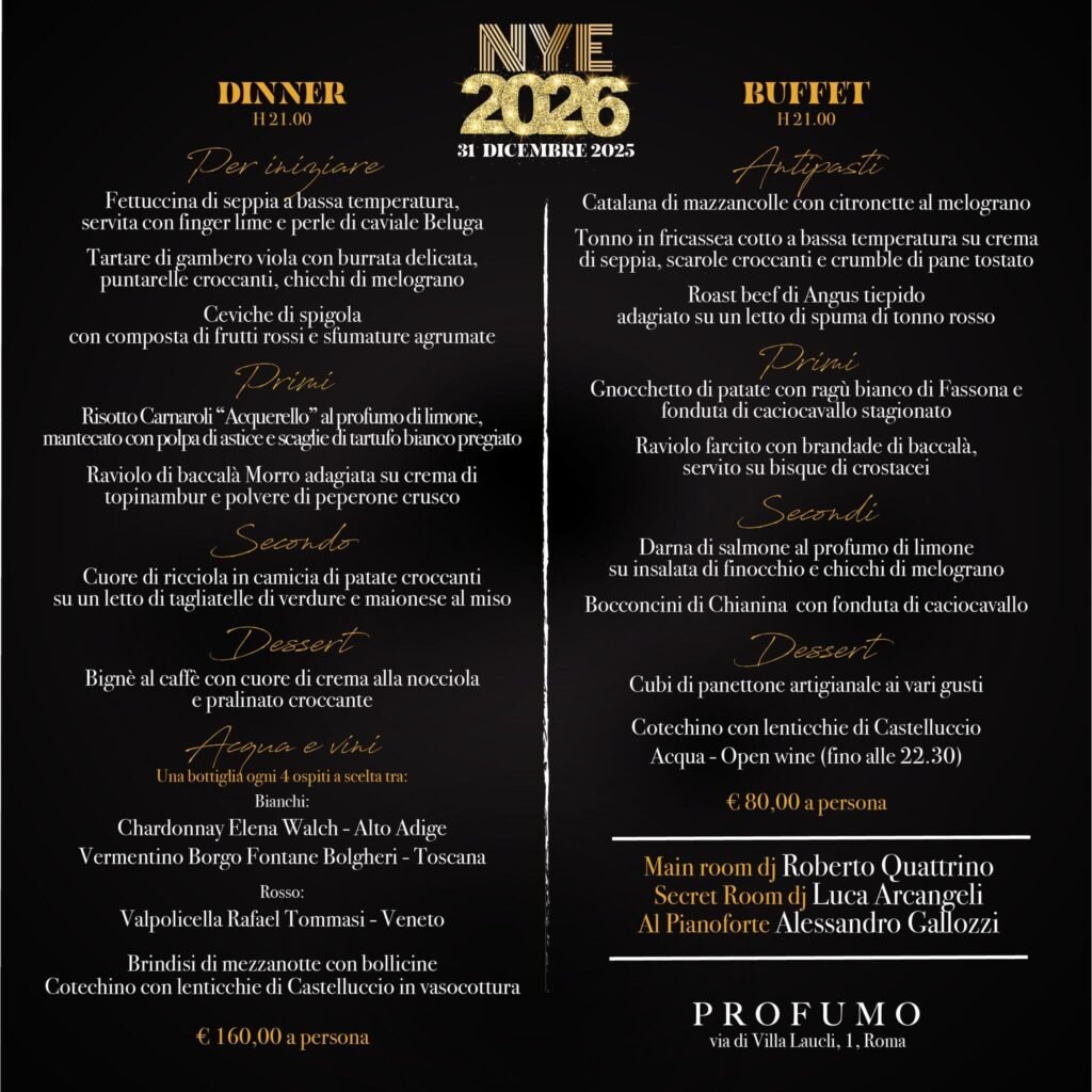 Chi conosce la location sa di cosa parliamo, uno dei migliori locali in zona Roma nord a due passi da Ponte Milvio, Profumo Spazio Sensoriale per l’ultimo dell’anno offre un’ottima serata che parte dalle 20:30 con cenone di gala, musica live e discoteca fino a tarda notte.